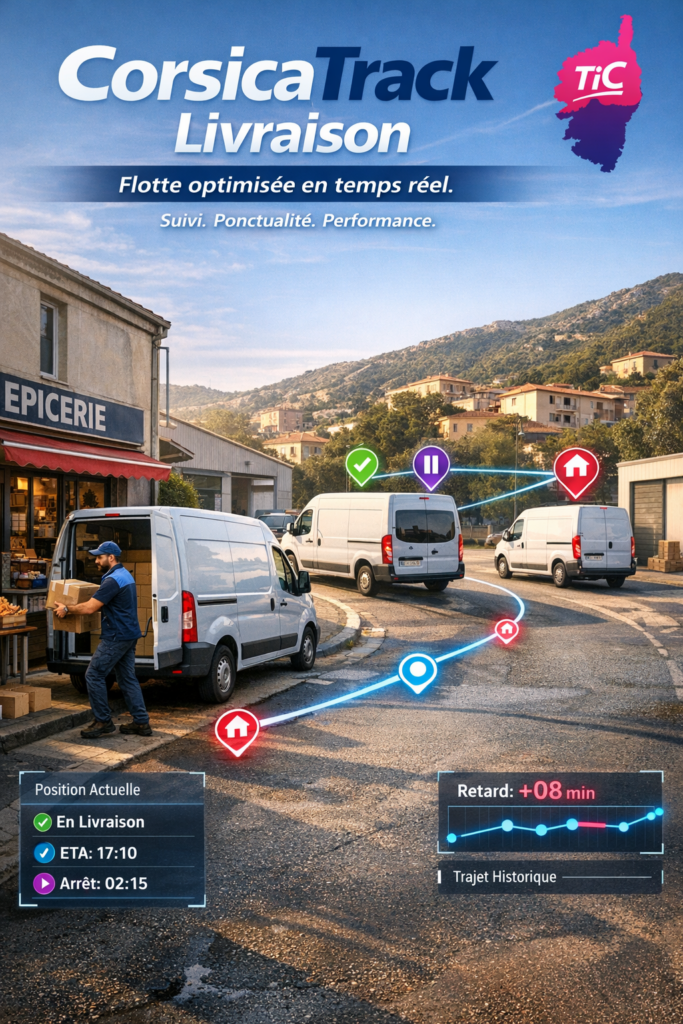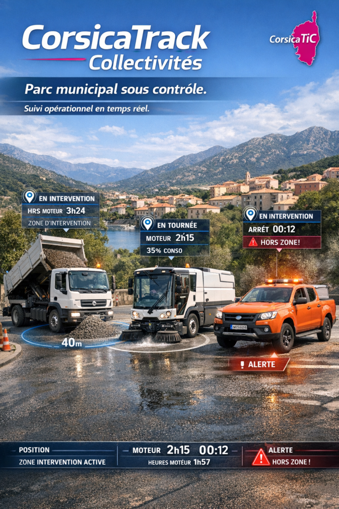C’est pourquoi avec CorsicaTrack Location & Mobilité, la flotte reste visible. Ainsi les retards sont identifiés, les zones sont maîtrisées, l’activité reste sous contrôle même quand le rythme s’accélère.